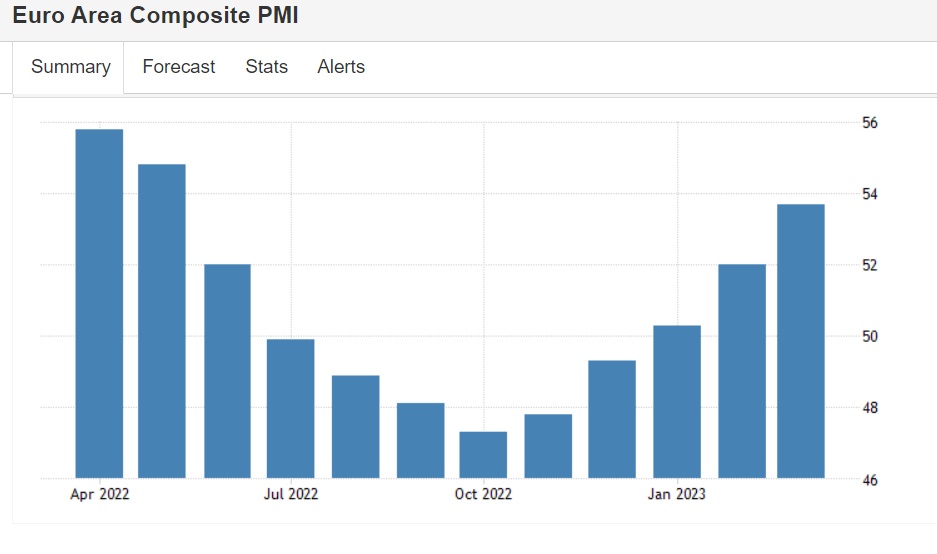 标普全球(S&P Global)的高级经济学家Joe Hayes表示:“欧元区经济继续从我们在2022年底看到的低迷之中反弹,最新的PMI调查数据将为这样一种观点增添新的信心——即至少就目前而言,欧元区经济没有出现此前预期的那般衰退。”