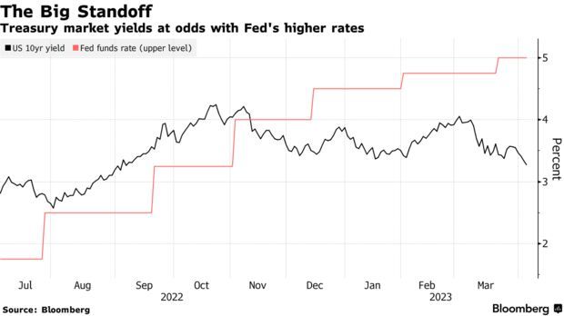 十年期美债收益率周一曾升至3.54%,原因是油价的飙升引发了通胀担忧。而当前,十年期美债收益率跌破了银行业危机后创下的年内低点,较三个月期美债收益率低150个基点,这是数十年来最大的倒挂幅度,从历史上看是一个可靠的衰退信号。