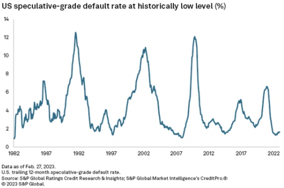 美国“投机级”债券违约率处于历史低位,这一现象令人不安。从历史上看,超低水平的垃圾级债券违约发生在衰退之前或衰退前后。更长期的高利率政策应该会继续导致违约上升。包括法国巴黎银行在内的一些分析师预计,垃圾级债券违约率将在2023年升至5%,并持续到2024年,直到利率上升的压力得到缓解。