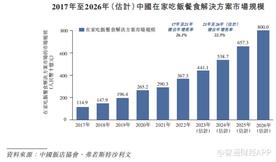 据智通财经APP了解,相比在家烹饪、餐厅堂食或外卖,在家吃饭餐食解决方案具有省时省事、方便快捷的特点,同时比外卖有着更高的卫生、营养与口感。