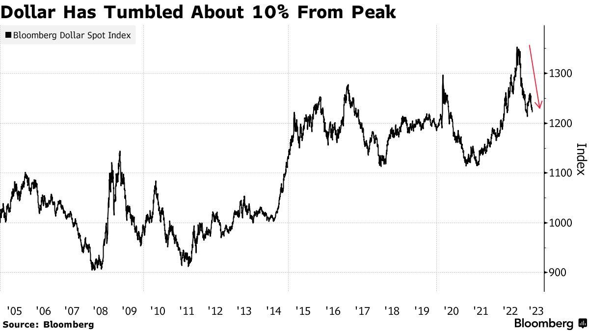 如今,美元已经处于下跌趋势,彭博美元现货指数较去年9月创下的高点已经下跌超10%。与此同时,英镑兑美元如今升至去年6月以来的最高水平,交易员们押注英国经济的韧性可能给予英国央行继续加息的空间。欧元近期同样表现强势,欧元兑美元近日创下为2月初以来的最高水平,有分析师预计欧元兑美元9月前将达到1.12。