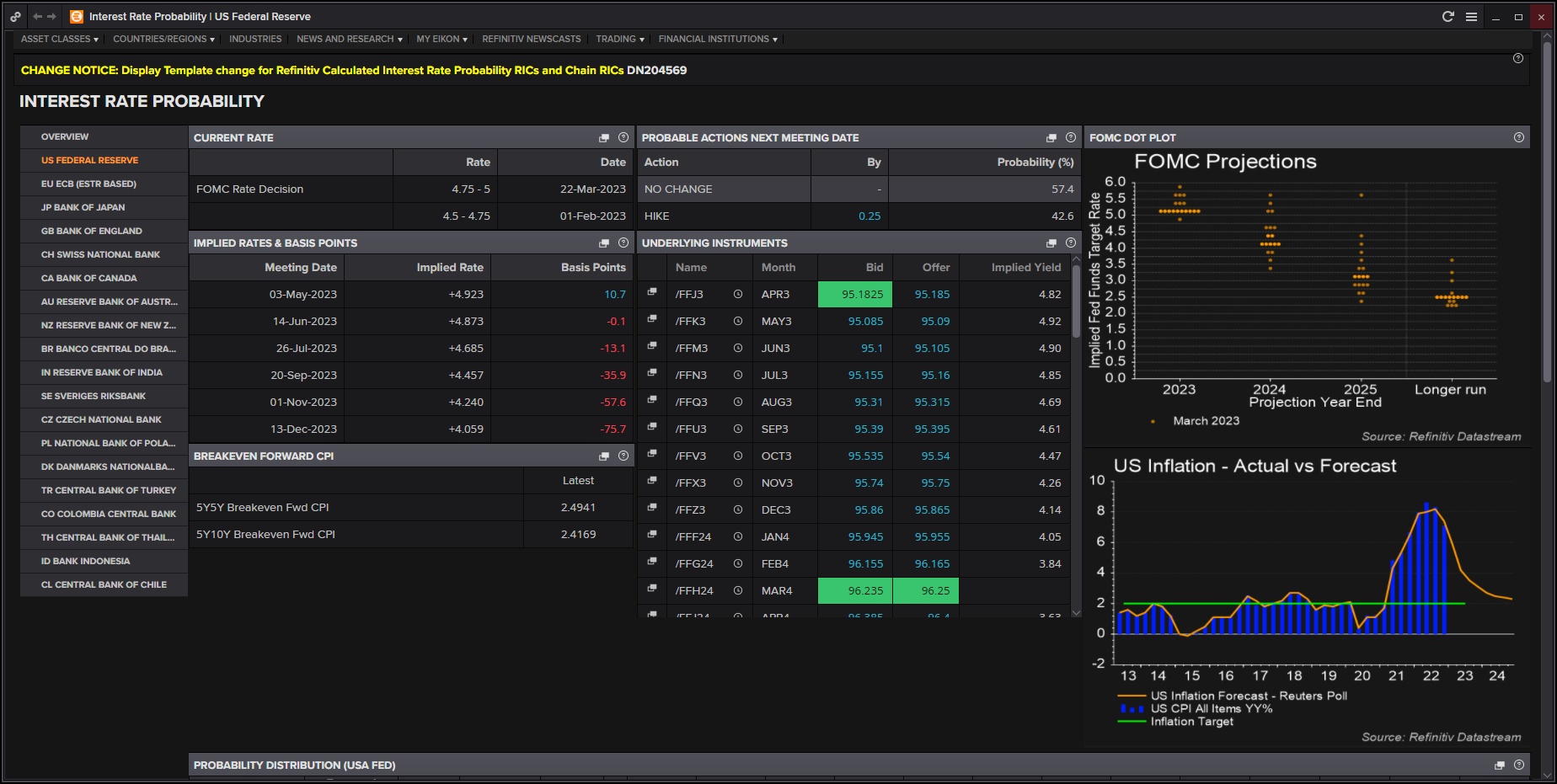 短短的几周内,市场预期发生了巨大转变,从此前预期美国基准利率将维持在5%以上且持续到明年年中,到如今预期12月将降息至4%附近。此外,利率期货市场对于本轮紧缩周期的预期峰值则已从近6%降至5%以下,并且押注美联储5月即停止加息。