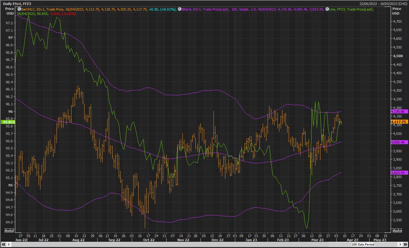 作为对于降息预期的回应,美股基准指数——标普500指数从3月份的低点3809点一度飙升至4171点,在此之后该指数进入“超买”状态并开始回落,可以说此前的攀升正是很大程度上反映了5月暂停加息以及年内降息预期。