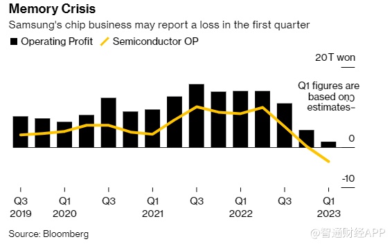 智通财经APP获悉,三星电子(SSNLF.US)宣布将削减存储芯片产量,此前该公司公布了2009年全球金融危机以来最低的利润。在供应过剩导致价格暴跌之后,这是该行业迈出的重要一步。截至3月份的三个月,三星电子营业利润骤降95%,至6000亿韩元(合4.5亿美元),低于分析师平均预期的1.4万亿韩元。销售额减少到63万亿韩元。