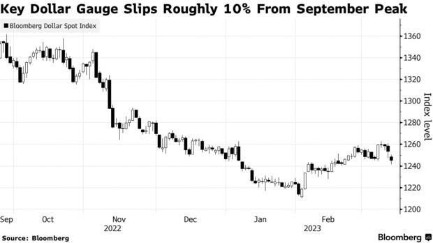 数据显示,Bloomberg美元现货指数今年迄今为止已下跌1.6%,较去年9月的纪录高点下跌了约10%。Luca Mannucci表示:“我们预计美国经济将在年底前陷入衰退。”“货币政策收紧会拖累经济。”此外,他还警告称,美国几家地区性银行的倒闭、以及围绕瑞信的丑闻等也将导致信贷条件收紧,并损害经济。