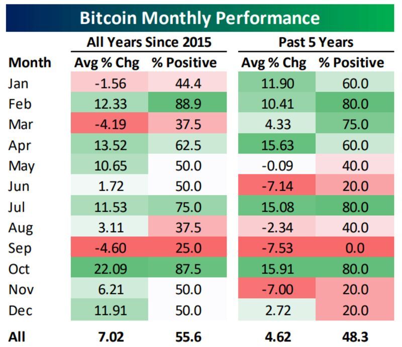 季节性因素也许会起到推动作用。根据Bespoke Investment Group汇编的数据,4月通常是比特币的稳定时期,是仅次于10月的表现第二好的月份。数据显示,过去五年,比特币在4月的平均涨幅为15.63%。对第二大加密货币以太坊来说,4月则是其自2018年以来表现最强劲的一个月,平均涨幅达33%。