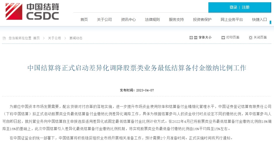 此前2019年,中国结算也下调过股票类业务最低结算备付金收取比例。2019年12月20日,中国结算表示,经履行向证监会报告程序,正式发布《结算备付金管理办法》,并自发布之日起实施。其中,将股票类业务最低结算备付金收取比例由20%降至18%。