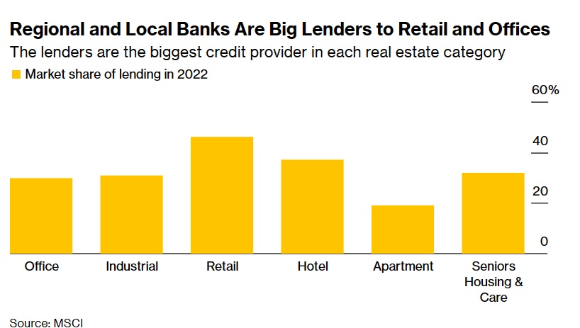 地区和地方银行是零售地产和办公楼的大型贷款人——这些贷款机构是各个房地产类别中最大的信贷提供者