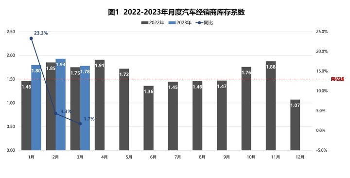 智通财经APP获悉,4月10日,中国汽车流通协会表示,2023年3月份汽车经销商综合库存系数为1.78,环比下降7.8%,同比上升1.7%。3月前三周,订单和成交量并未出现明显增加,直到最后1.5周,终端销量出现了较大增幅。尽管经销商总库存规模有所增加,但库存系数回落,整体库存水平仍然在警戒线以上。