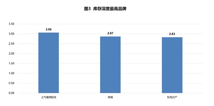 从库存深度来看,3月份库存深度超过2个月的品牌有9个,其中库存深度最高的品牌为上汽通用别克、荣威、东风日产。