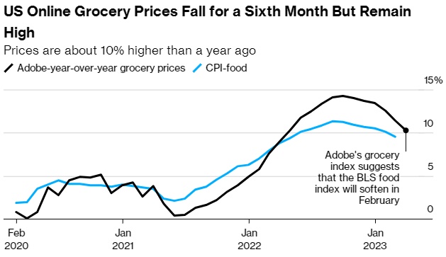 但与此同时,食品杂货价格仍然是家庭预算的一大难题。虽然过去六个月价格涨幅有所放缓,但3月份同比上涨10.3%。在线食品杂货价格追踪美国政府官方消费者价格指数中的食品类别。