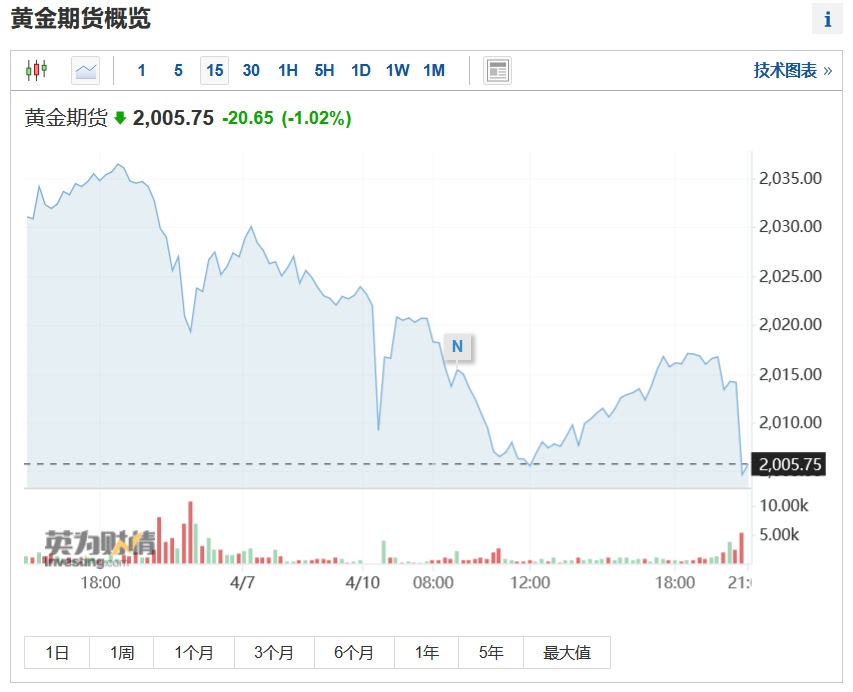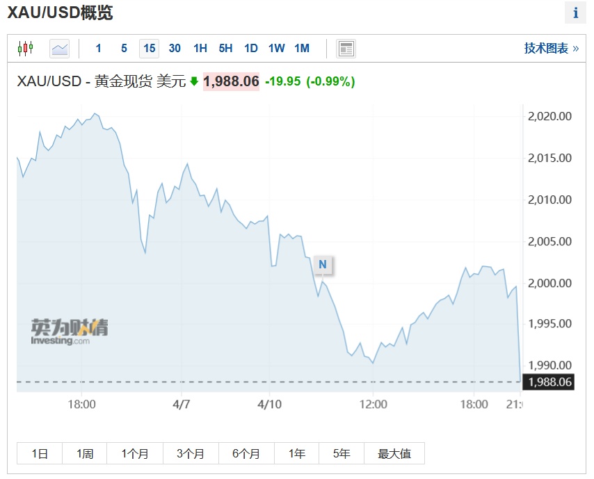 黄金通常被认为是对冲通胀的工具,而利率上升会增加持有这一资产的机会成本。金价在上周突破2000美元关口,原因在于,继油价飙升之后,一系列疲软的美国经济数据令美国经济衰退的风险加剧。
