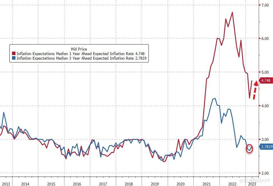 通胀预期的上升可能对美联储降低通胀的努力构成新挑战。央行官员普遍认为,公众对价格压力的预期对目前的通货膨胀水平有很大影响。过去一年,美联储一直在积极采取措施降低通胀,目前的通胀率为5%,希望将其降至2%,通胀可能开始降温的迹象为利率上升周期的结束敲开了大门。