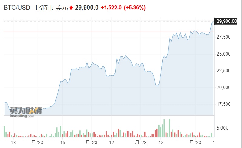 智通财经APP获悉,自3月初以来,比特币上涨势头不断,并逐渐逼近3万美元大关。周二,这个市值最大的加密货币一度达到29900美元,这是自去年6月初以来的最高水平。尽管这一涨势的确切原因仍然很难确定,但在上个月的银行业危机之后,投资者的乐观情绪高涨。