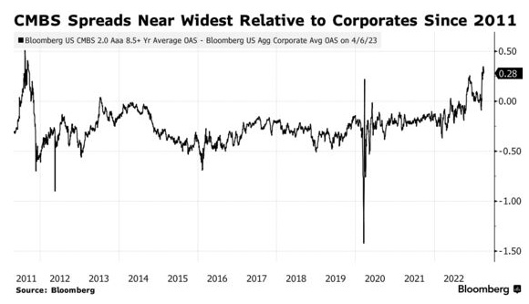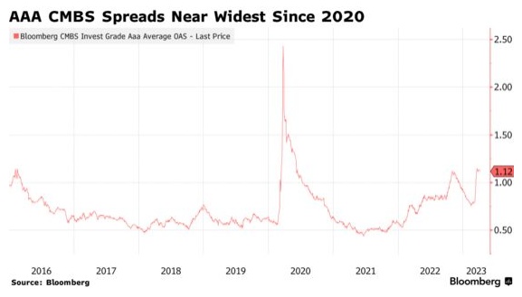 截至周四收盘,评级最高的商业抵押贷款债券的风险溢价平均约为1.12个百分点。这接近自新冠疫情早期以来的最高水平,在此之前,接近2016年以来的最高水平。