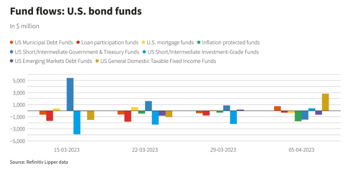 与此同时,美国债券基金的需求激增,净流入81亿美元,为1月11日以来的最大金额。