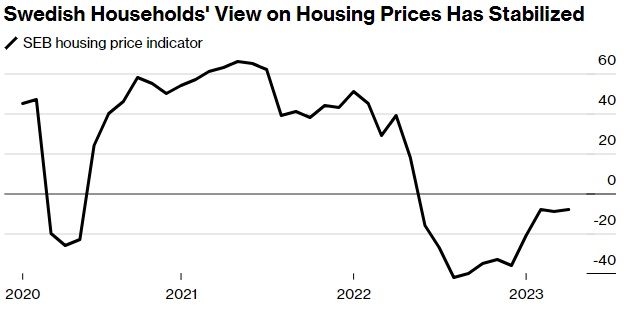 尽管瑞典家庭仍预计房价会出现一些下滑,但自去年8月该指标跌至创纪录低点以来,家庭的情绪已有所好转。与此同时,房地产市场也已出现了暴跌,房价下跌了约15%,这是通胀上升和借贷成本上升导致房地产市场低迷的最严重例子之一。
