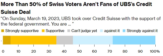 瑞士信贷的救助不仅激怒了政界人士,也激怒了瑞士的许多群众。政治研究公司gfs.bern的一项调查发现,大多数瑞士人并不支持该协议。