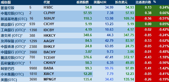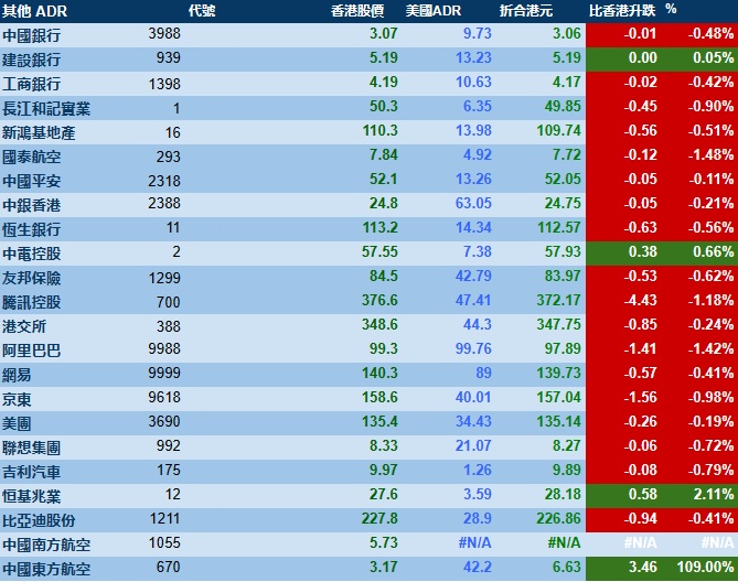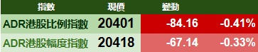 智通财经APP获悉,周二美股三大指数涨跌不一,港股ADR指数下跌,按比例计算,收报20401点,较香港收市跌84.16点或0.41%。