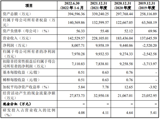 财务方面,于2019年度、2020年度及2021年度,公司实现营业收入分别约为13.76亿元、18.34亿元、22.81亿元。公司净利润分别约为-2520.2万元、9440.86万元、9958.19万元人民币。