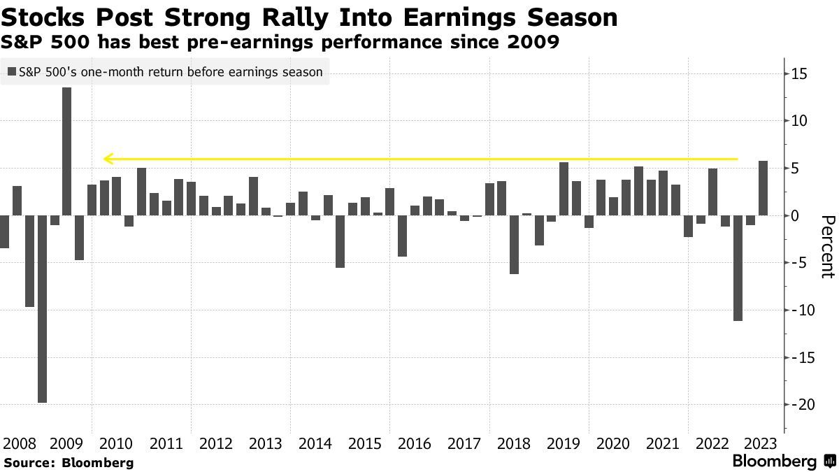 标普500指数创下自2009年以来美股财报季前的最佳表现