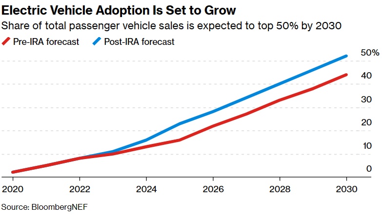 电动汽车的使用将会增长——预计到2030年,美国电动乘用车总销量代表的份额预计将超过50%