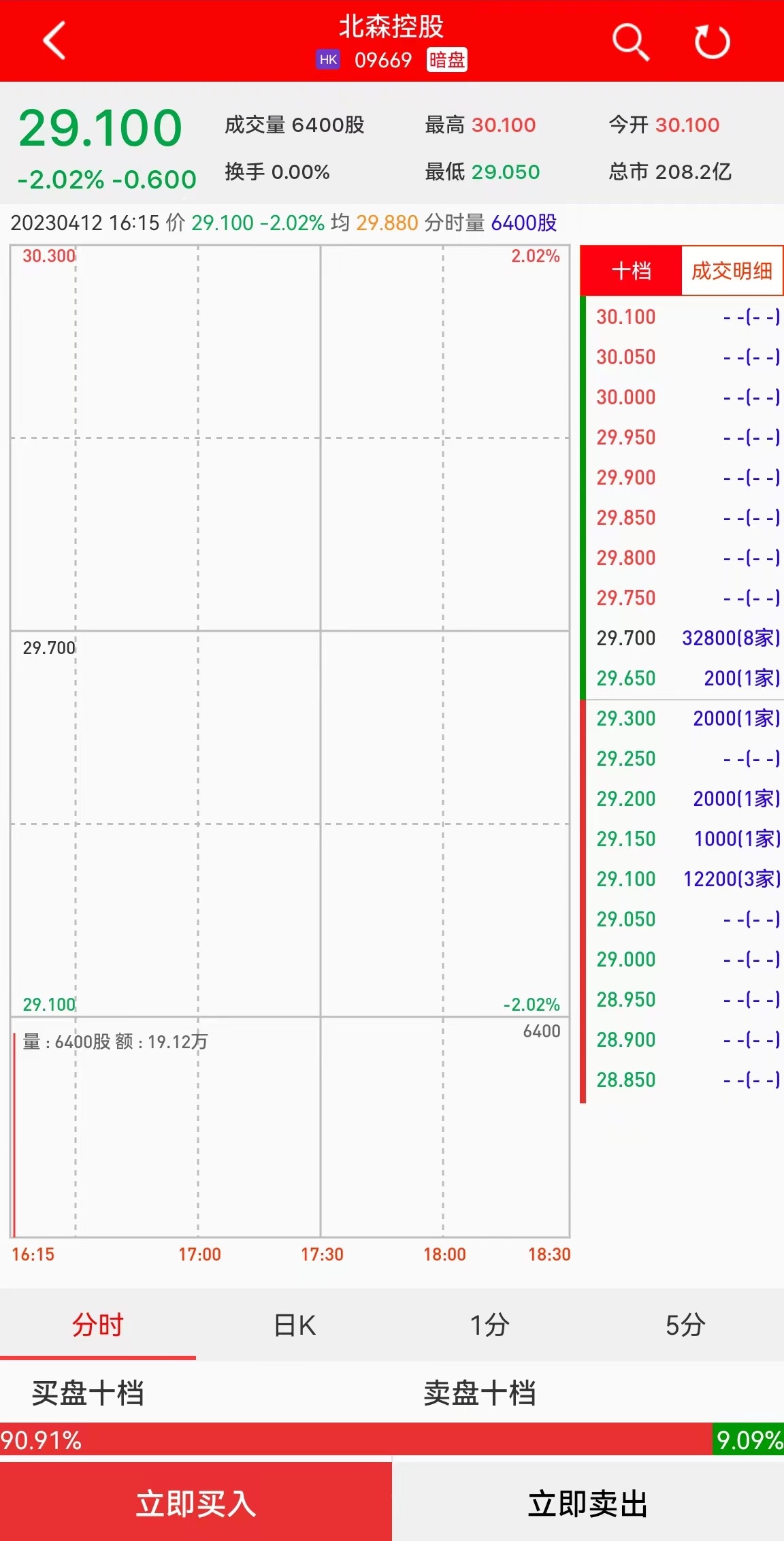 智通财经APP获悉,北森控股(09669)将于4月13日(周四)在香港挂牌。截至发稿,利弗莫尔证券暗盘交易显示报价29.1港元,较招股价29.7港元跌2.02%。每手200股,不计手续费,每手亏120港元。