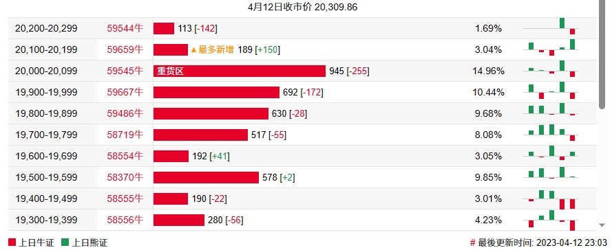 牛证街货重货区在20000-20099区间,该区间最新牛证数量为945张,较上一交易日减少255张;最多新增在20100-20199区间,该区间最新牛证数量为189张,较上一交易日增加150张。