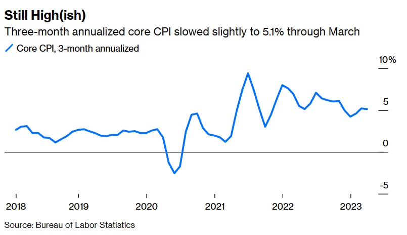 通胀仍然很高——截至3月份,3个月期的核心CPI年率仅略降至5.1%