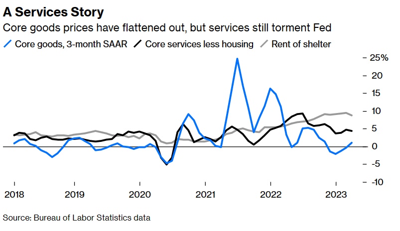 服务通胀压力——核心商品价格已趋于平稳,但服务通胀仍在折磨美联储