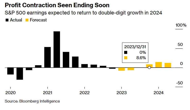 背后的主要逻辑除了对于美联储年前转向宽松政策的押注,还在于一些乐观投资者来看,第一季度整体业绩不会太好,但可能会超出遭分析师们大幅下调的悲观预期,并可能标志着周期性的低点。对于一个坚持不懈地展望未来的股票市场来说,看涨的重点理由之一就是企业利润水平将在今年晚些时候恢复增长趋势。