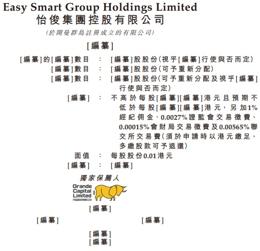 智通财经APP获悉,据港交所4月13日披露,怡俊集团控股有限公司(Easy Smart Group Holdings Limited)第三次向港交所主板递交上市申请,Grande Capital Limited为其独家保荐人。该公司曾于2021年10月29日、2022年10月12日递表港交所。