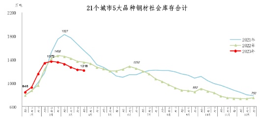 智通财经APP获悉,中钢协公布4月上旬钢材社会库存监测旬报。数据显示,4月上旬,21个城市5大品种钢材社会库存1218万吨,环比减少13万吨,下降1.1%,库存降幅收窄;比年初增加466万吨,上升62.0%;比上年同期减少138万吨,下降10.2%。