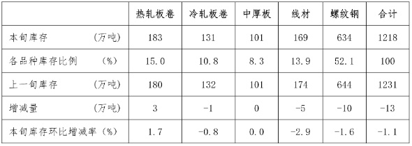 4月上旬,5大品种钢材社会库存环比各有升降,其中螺纹钢为减量最大品种,具体情况见下表。