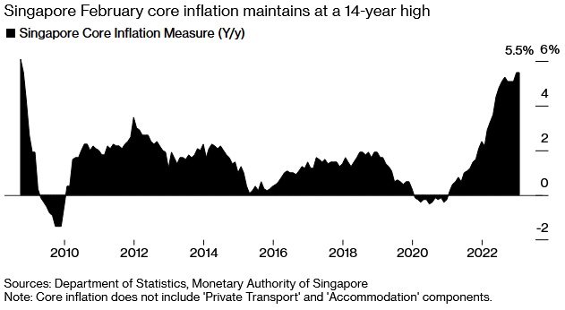 新加坡的核心通胀率仍处于2009年以来的最高水平。市场存在分歧的地方在于,他们不知道目前对于新加坡金管局来说,通胀还是经济增长对他们的影响更大。新加坡金管局董事总经理Ravi Menon上月曾表示,一些市场主体预计紧缩周期将很快结束,央行甚至可能开始放松政策,这些想法“太过乐观”。