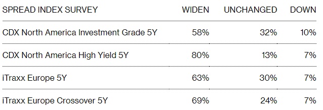 信贷利差预计将进一步走高,近60%的参与者预计北美信贷利差将在未来三个月扩大,80%的受访者预计高收益债券利差将上升。