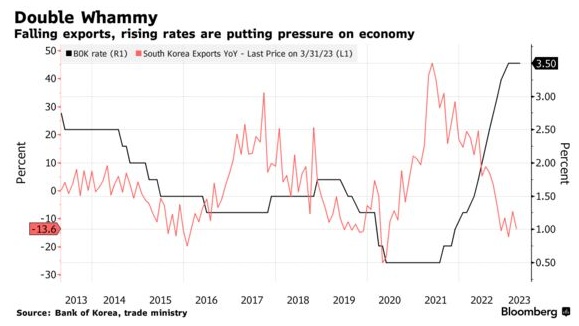 在韩国,出口下滑拖累了生产,并有可能进一步削弱投资者对经济增长前景的信心。由于价格上涨侵蚀了支出,消费也有所减弱。与此同时,由于借贷成本上升,房地产市场下滑,开发商的违约风险也在上升。