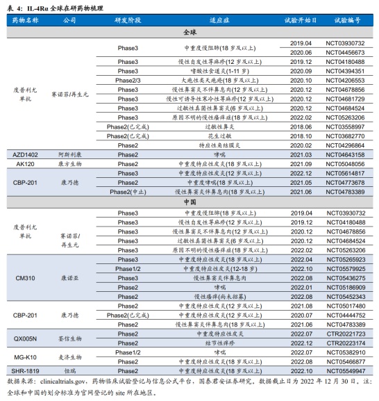 此外,除了度普利尤单抗外,阿斯利康、康方生物、康诺亚、荃信生物、麦济生物及恒瑞等多家厂商都在布局IL-4Rα靶点。