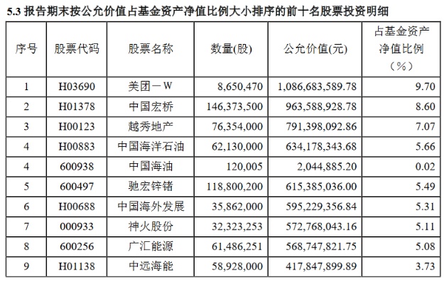 值得注意的是,从中庚价值领航一季报公布的十大重仓股中也可以看到,港股的比例占到一半以上。截至3月底,该基金前十大重仓股包括美团-W(03690)、中国宏桥(01378)、越秀地产(00123)、中国海洋石油(00883)、中国海油(600938.SH)、驰宏锌锗(600497.SH)、中国海外发展(00883)、神火股份(000933.SZ)、广汇能源(600256.SH)、中远海能(01138)、兖矿能源(01171)。