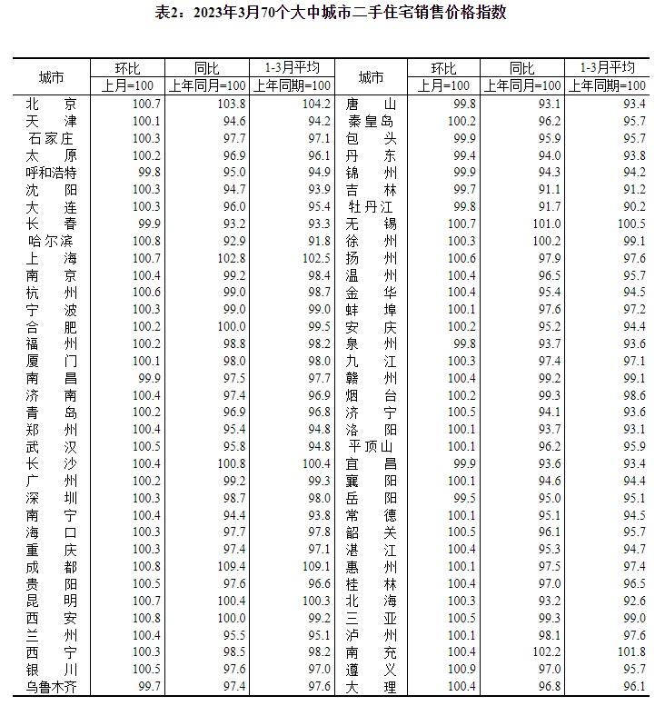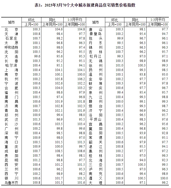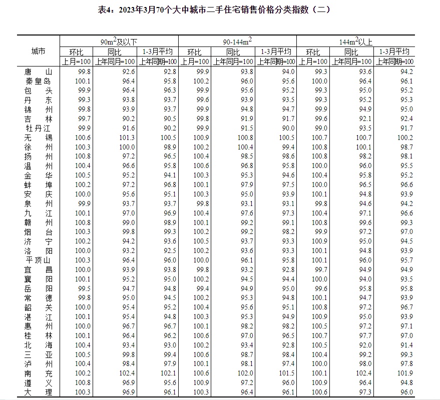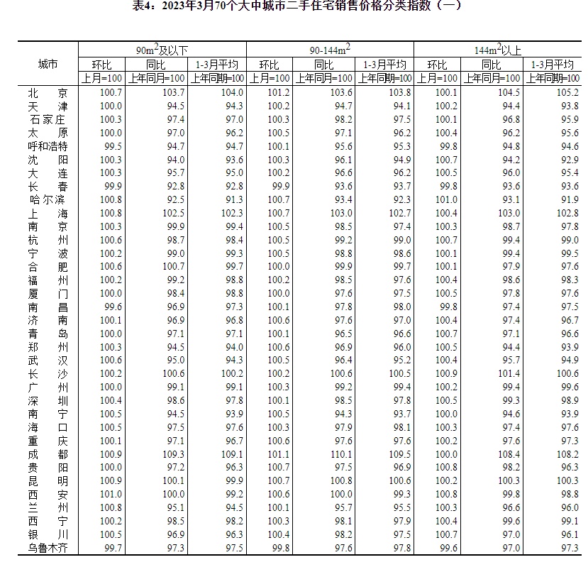 智通财经APP获悉,4月15日,国家统计局发布2023年3月份70个大中城市商品住宅销售价格变动情况。3月份,70个大中城市中,新建商品住宅和二手住宅销售价格同比上涨城市分别有18个和8个,比上月分别增加4个和1个。3月份,一线城市新建商品住宅销售价格同比上涨1.7%,涨幅与上月相同;二手住宅销售价格同比上涨1.1%,涨幅比上月扩大0.1个百分点。二线城市新建商品住宅和二手住宅销售价格同比分别下降0.2%和2.4%,降幅比上月均收窄0.5个百分点。三线城市新建商品住宅和二手住宅销售价格同比分别下降2.7%和3.9%,降幅比上月分别收窄0.6和0.5个百分点。