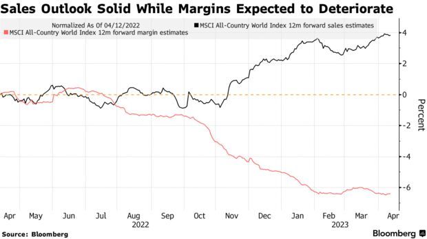 贝莱德投资策略师Karim Chedid表示:“企业盈利方面的痛苦会更多,因为利润率可能会进一步下降,它们才刚刚从峰值下降。”“利润率将是关键,因为我们要衡量通胀从峰值回落的速度有多快,以及随着就业岗位超过峰值,劳动力市场仍有多紧张。这将是市场环境和风险资产评估的一个重要决定因素。”