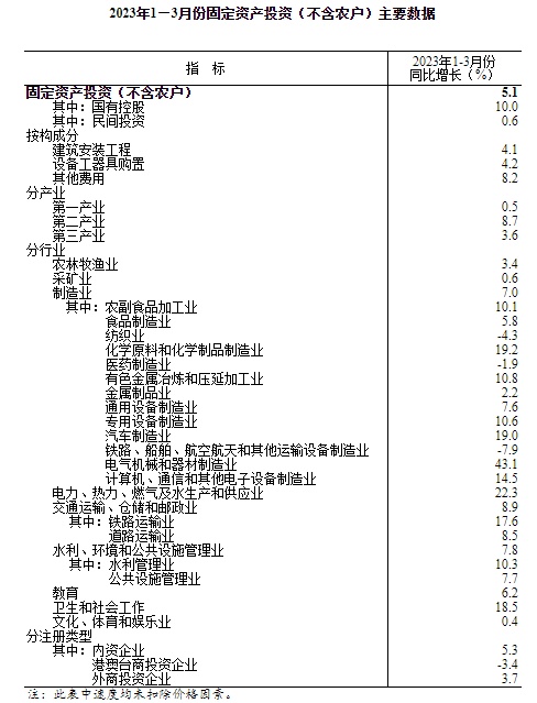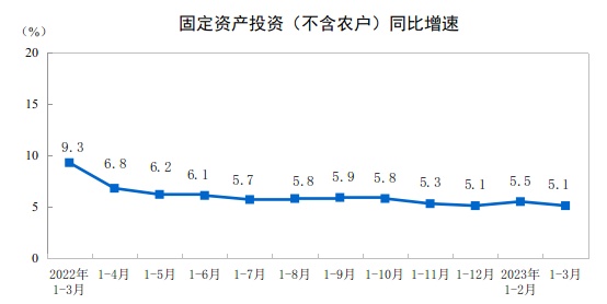 2023年1—3月份全国固定资产投资增长5.1%