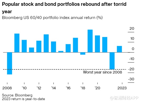 Bloomberg美国60/40投资组合指数在2022年暴跌近17%,创下十多年来最大年度跌幅后,今年上涨了6.3%。然而,贝莱德策略师警告称,这并不意味着这个流行的投资组合将回到1980年代以来的持续上涨状态。