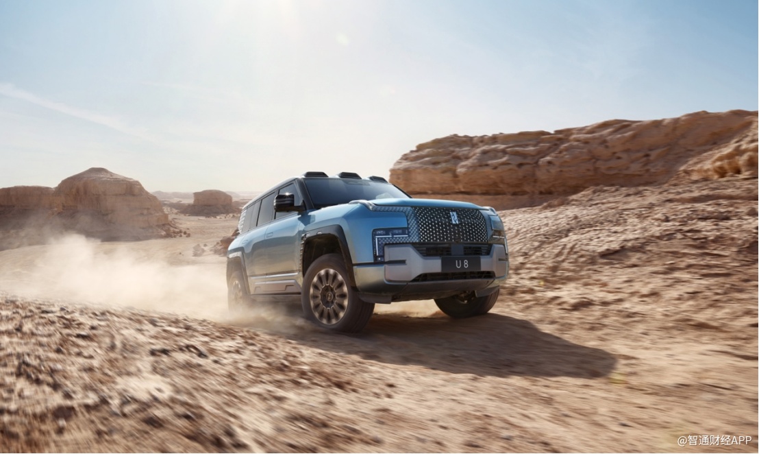 仰望U8定位为百万级高端新能源硬派越野车。基于两大自主研发的核心技术成果——易四方技术和云辇-P智能液压车身控制系统,带给仰望U8前所未有的性能天赋。易四方技术,能够实现极限操稳、应急浮水、原地掉头和敏捷转向等场景功能,为用户带来极致的安全、性能与体验。U8的最大动力输出超1100匹马力,百公里加速时间最快仅为3.6s,澎湃的动力和精准的控制能力,让U8具备超强的越野实力,在阿拉善大V沟轻松完成沙漠干拔冲坡挑战。