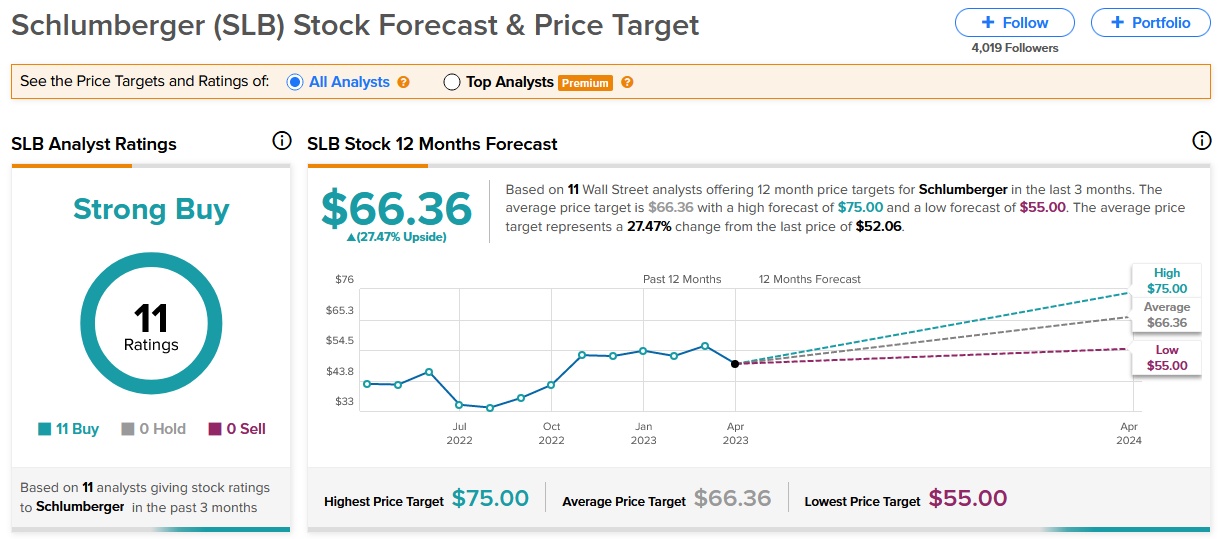 David Anderson对斯伦贝谢的评级为“增持”,目标价为74美元。此外,华尔街分析师对斯伦贝谢的共识评级为“强力买入”,平均目标价为66.36美元,意味着较当前股价有27%的上涨空间。