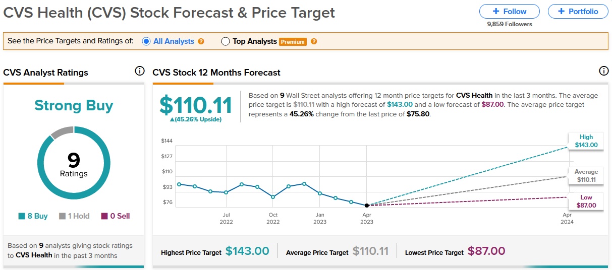 Brian Tanquilut对CVS健康的评级为“买入”,目标价为143美元,较当前股价有89%的上涨空间。此外,华尔街分析师对CVS健康的共识评级为“强力买入”,平均目标价为110.11美元,意味着较当前股价有45%的上涨空间。