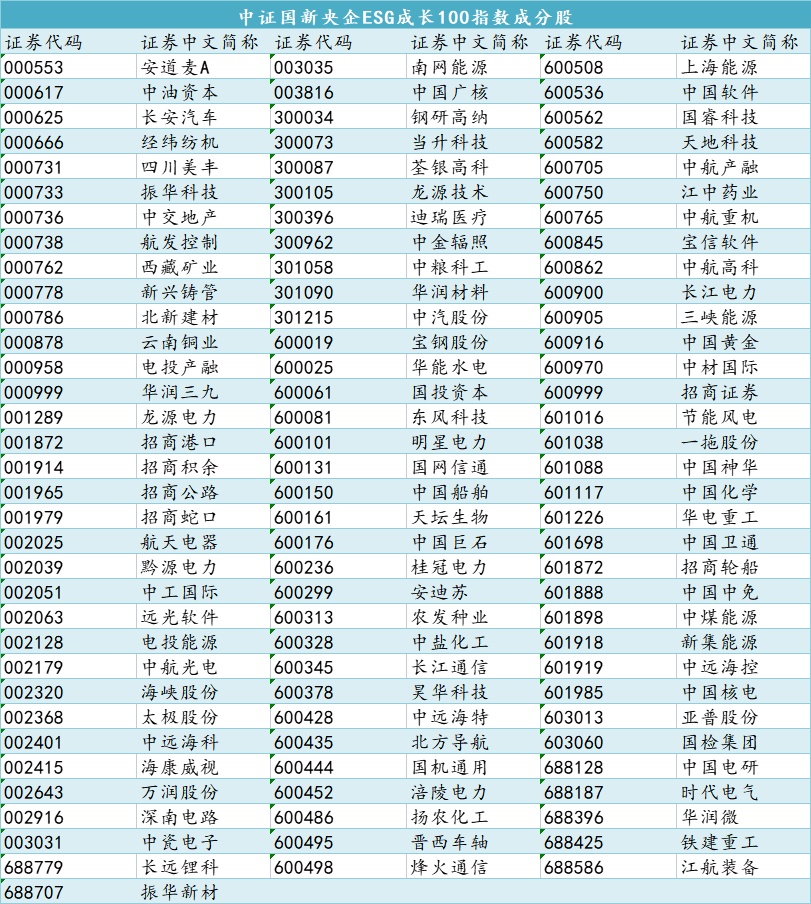 据悉,中证国新央企ESG成长100指数由国新咨询有限责任公司定制,从国务院国资委或其下属中央企业实际控制的上市公司中选取国新ESG综合得分靠前、盈利能力较强、成长性较高的证券作为指数样本,为市场提供更多ESG投资标的。