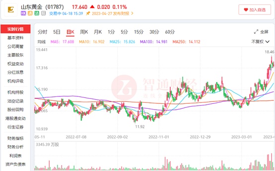 随着黄金价格持续走高,港A两市中的不少黄金标的股价也一路水涨船高,港股黄金板块震荡上扬,20个交易日板块涨幅接近25%,其中,山东黄金H股3月至今的累计涨幅更是高达41.73%,近期其股价更是创2021年1月以来新高,在震荡的市场中表现不俗。