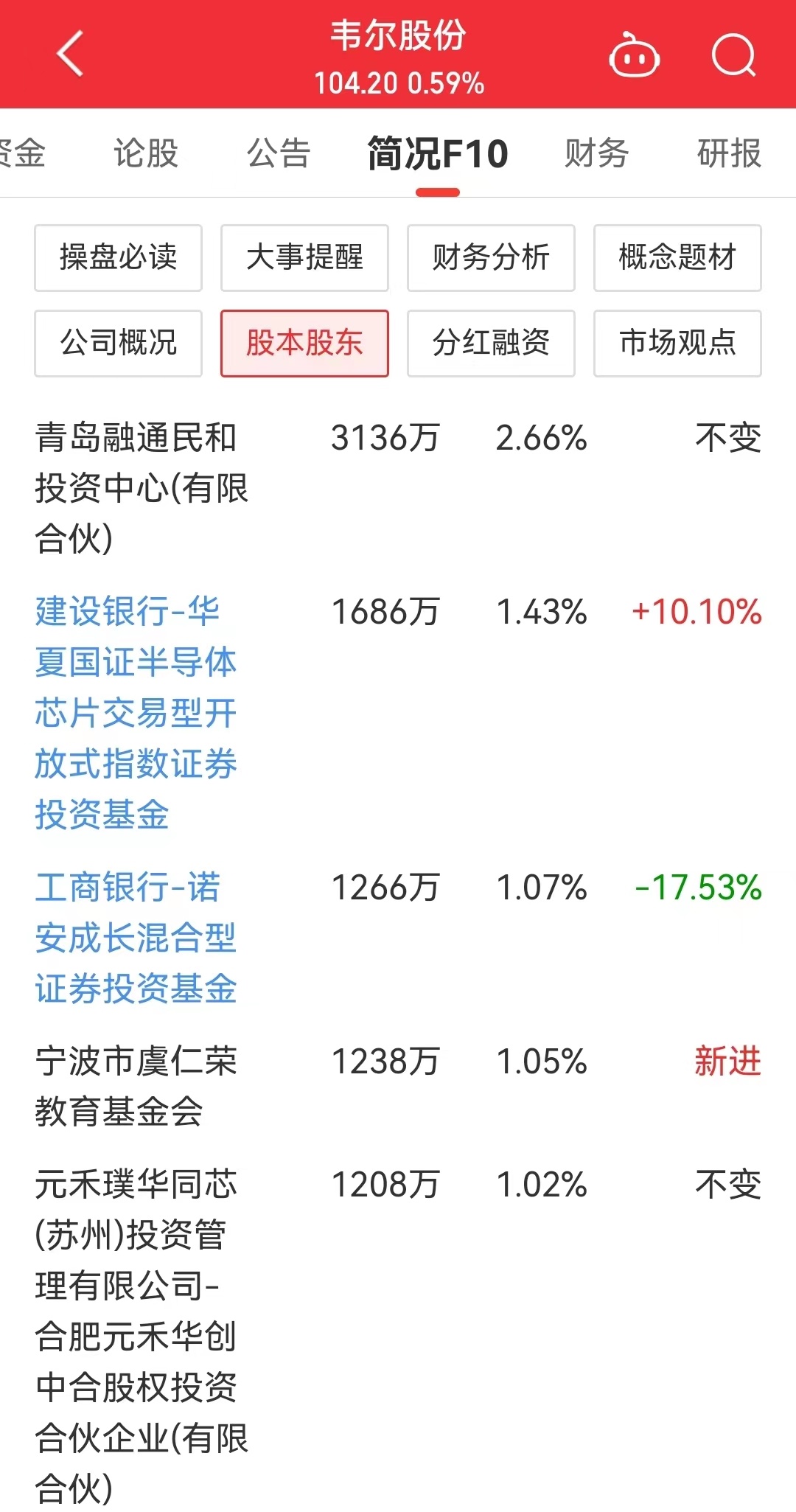 二级市场方面,今年以来,韦尔股份累计涨超35%。截至18日收盘,韦尔股份涨0.59%,报104.2元/股。