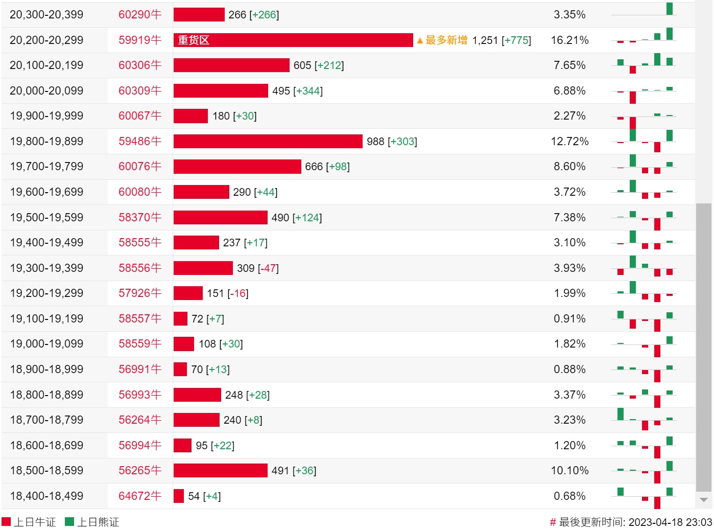 智通财经APP获悉,截至4月19日,恒指最新的牛熊街货比例为70:30。